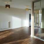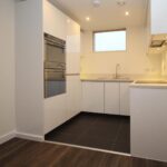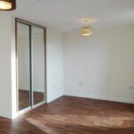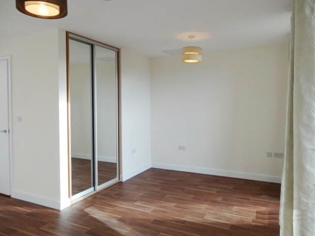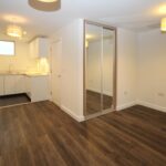 Large studio room with kitchen fitted into L shaped corner . Fitted wardrobe.