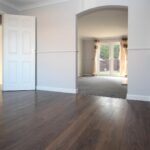 Hallway leading to dining room at front of house with through archway to reception room with feature flame effect elelctric fireplace. Double french windows to patio area and rear garden.