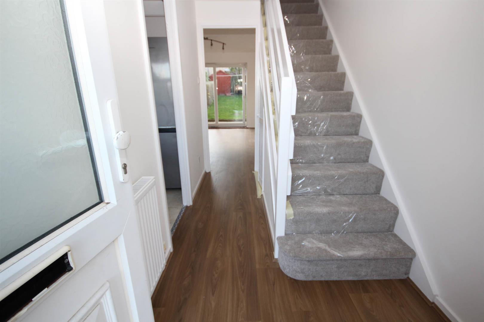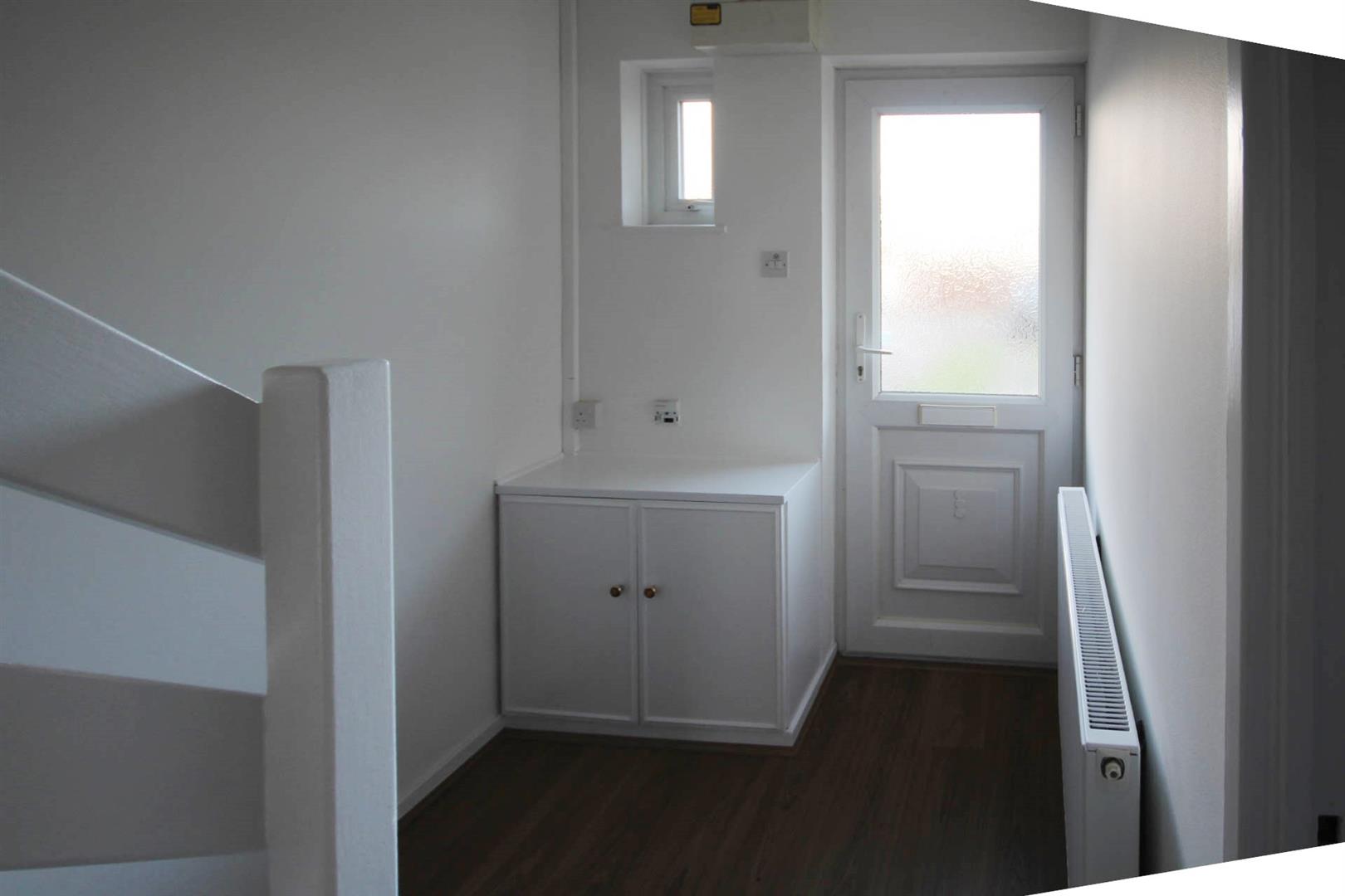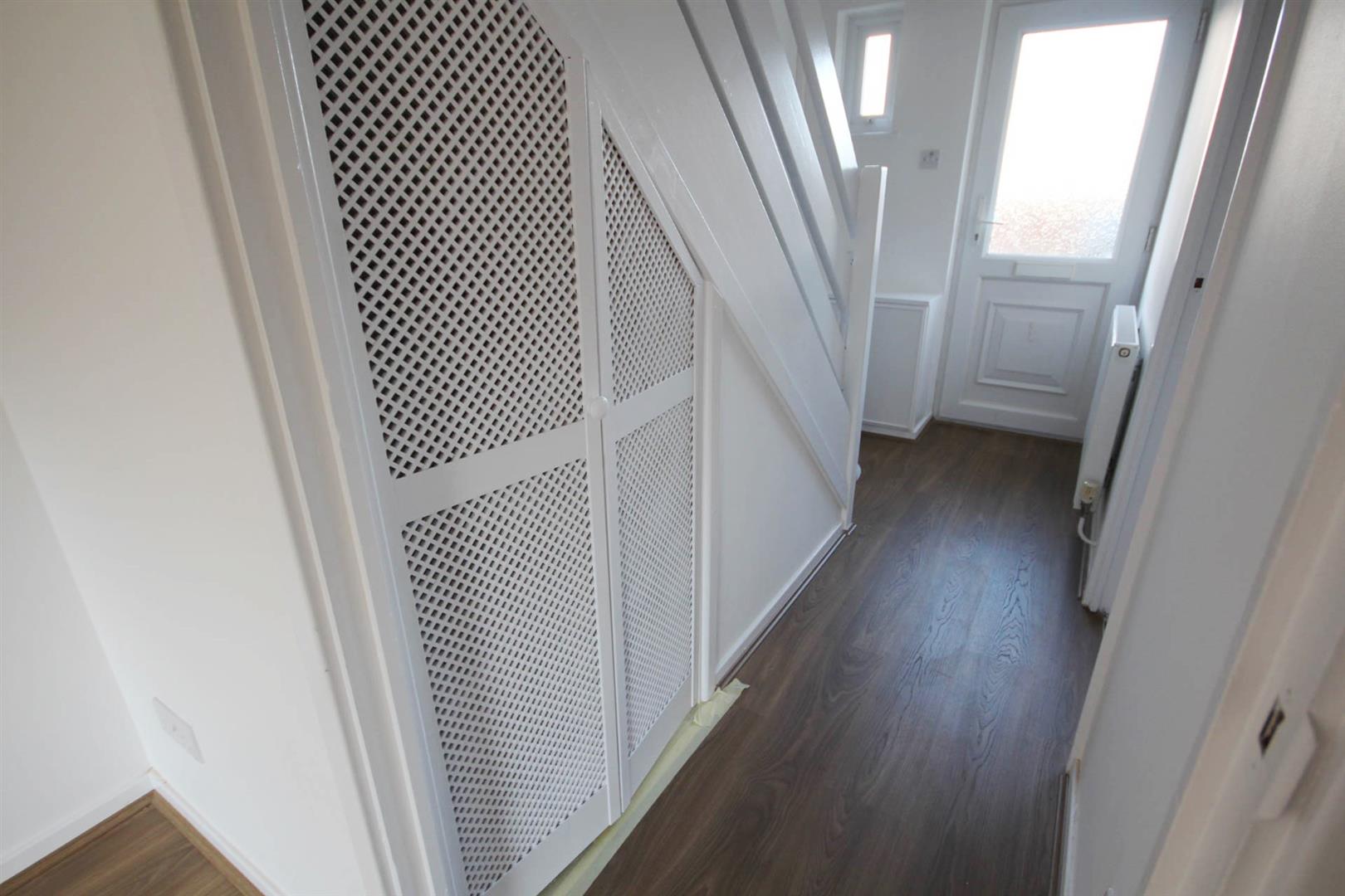 Entrance hallway with New LVT / laminate floor and under stairs storage cupboard.